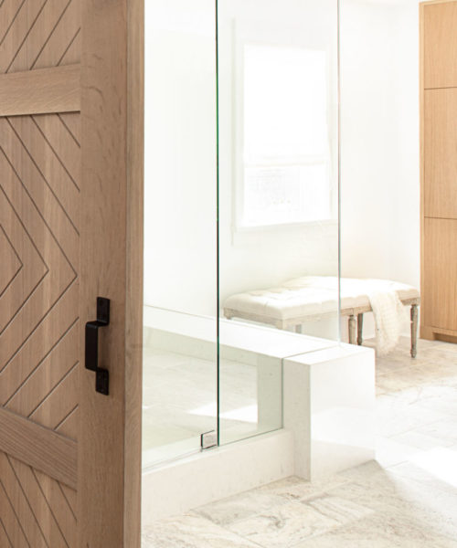 For the steam shower, Kelly chose a simple white tile with a smooth texture for a seamless transition from wall to shower.